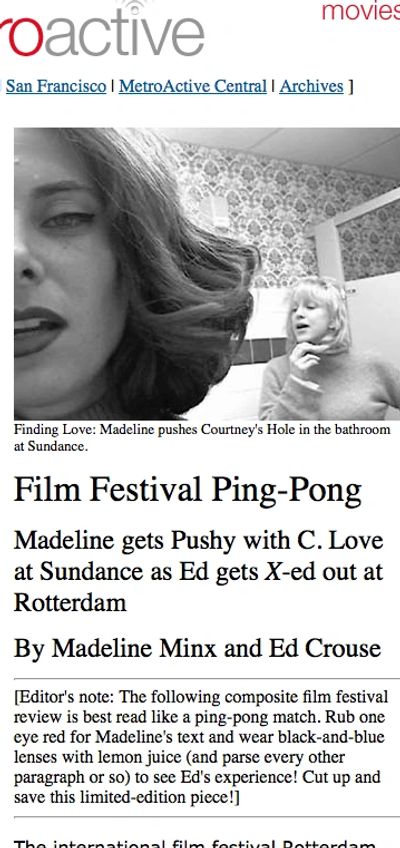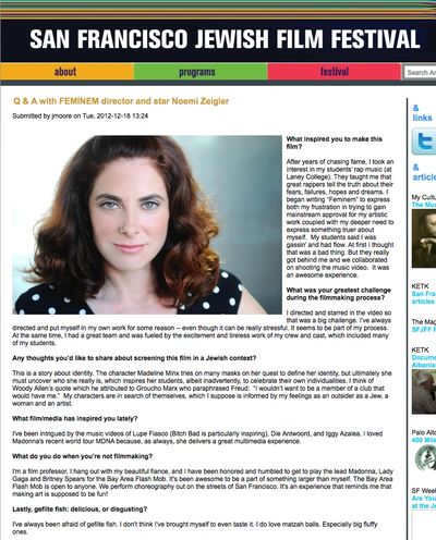 My work has been featured in the Huffington Post, Film Threat, SF Weekly, SF Chronicle, Bay Guardian, Austin Chronicle, The New Mexican, Pasatiempo, The Stranger, GrungeCake, J. Weekly, Maximum Rock n’ Roll, Jewish Journal, SF Bay Guardian, Rhizome & more.